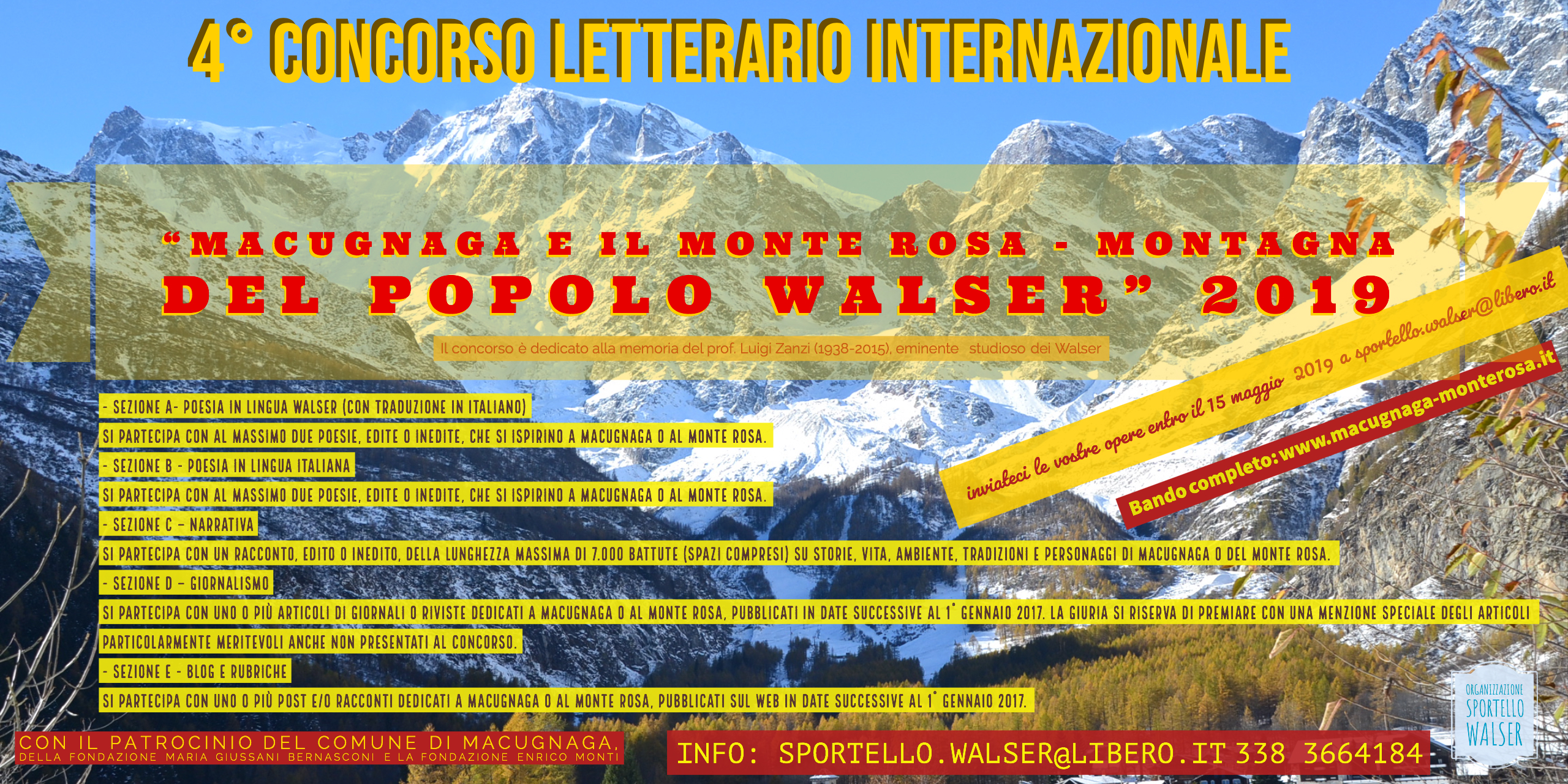 Locandina 4° Concorso Letterario Internazionale "Macugnaga e il Monte Rosa - Montagna del Popolo Walser", 2019